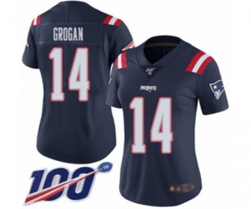 Women's New England Patriots #14 Steve Grogan Limited Navy Blue Rush Vapor Untouchable 100th Season Football Jersey