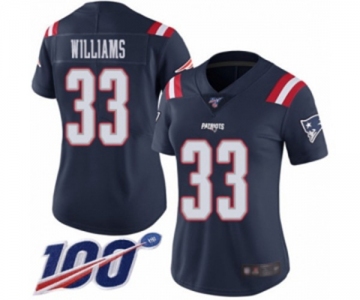 Women's New England Patriots #33 Joejuan Williams Limited Navy Blue Rush Vapor Untouchable 100th Season Football Jersey
