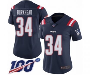 Women's New England Patriots #34 Rex Burkhead Limited Navy Blue Rush Vapor Untouchable 100th Season Football Jersey