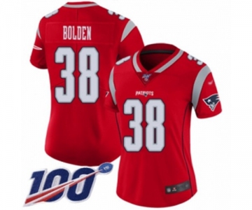Women's New England Patriots #38 Brandon Bolden Limited Red Inverted Legend 100th Season Football Jersey