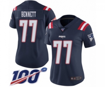 Women's New England Patriots #77 Michael Bennett Limited Navy Blue Rush Vapor Untouchable 100th Season Football Jersey