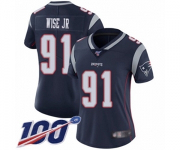 Women's New England Patriots #91 Deatrich Wise Jr Navy Blue Team Color Vapor Untouchable Limited Player 100th Season Football Jersey
