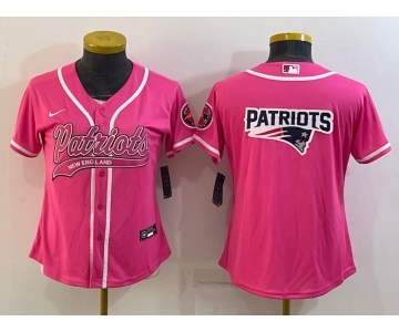 Women's New England Patriots Pink Team Big Logo With Patch Cool Base Stitched Baseball Jersey