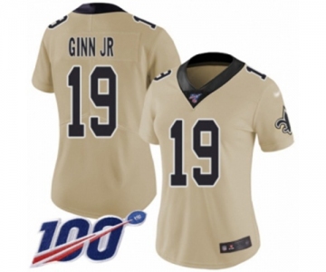 Women's New Orleans Saints #19 Ted Ginn Jr Limited Gold Inverted Legend 100th Season Football Jersey