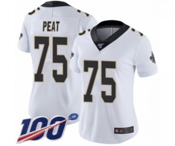 Women's New Orleans Saints #75 Andrus Peat White Vapor Untouchable Limited Player 100th Season Football Jersey