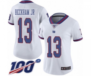 Women's New York Giants #13 Odell Beckham Jr Limited White Rush Vapor Untouchable 100th Season Football Jersey