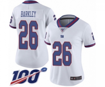Women's New York Giants #26 Saquon Barkley Limited White Rush Vapor Untouchable 100th Season Football Jersey
