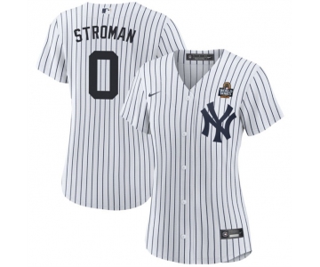 Women's New York Yankees #0 Marcus Stroman White 2024 World Series With Name Cool Base Stitched Baseball Jersey
