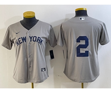 Nike Women's New York Yankees #2 Derek Jeter Authentic Grey Road Baseball Jersey