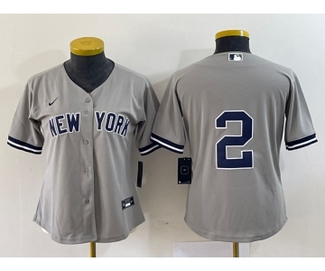 Nike Women's New York Yankees #2 Derek Jeter Authentic Grey Road Baseball Jersey