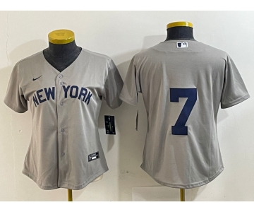 Women's New York Yankees #7 Mickey Mantle 2021 Grey Field of Dreams Cool Base Stitched Jersey