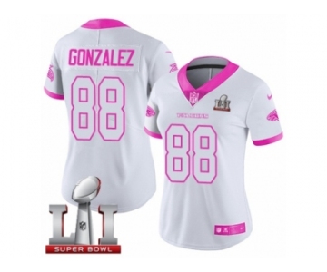 Women's Nike Atlanta Falcons #88 Tony Gonzalez Limited White Pink Rush Fashion Super Bowl LI 51 NFL Jersey