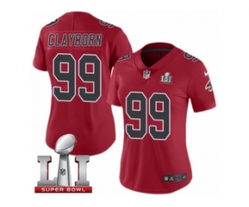 Women's Nike Atlanta Falcons #99 Adrian Clayborn Limited Red Rush Super Bowl LI 51 NFL Jersey