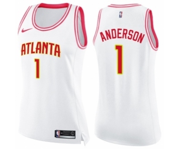 Women's Nike Atlanta Hawks #1 Justin Anderson Swingman White Pink Fashion NBA Jersey