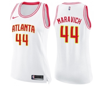 Women's Nike Atlanta Hawks #44 Pete Maravich Swingman White Pink Fashion NBA Jersey