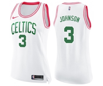 Women's Nike Boston Celtics #3 Dennis Johnson Swingman White Pink Fashion NBA Jersey