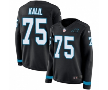 Women's Nike Carolina Panthers #75 Matt Kalil Limited Black Therma Long Sleeve NFL Jersey
