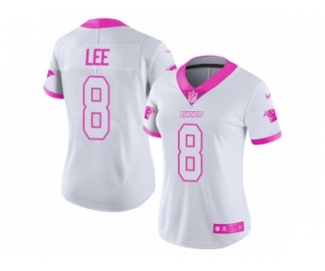 Women's Nike Carolina Panthers #8 Andy Lee Limited White Pink Rush Fashion NFL Jersey