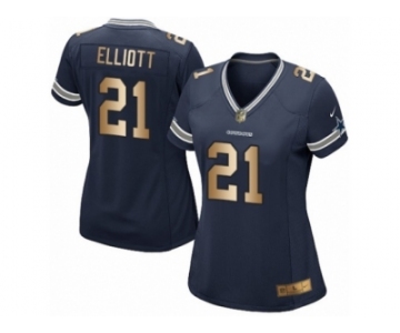 Women's Nike Dallas Cowboys #21 Ezekiel Elliott Elite Navy Gold Team Color NFL Jersey