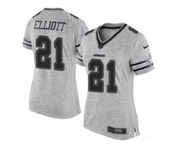 Women's Nike Dallas Cowboys #21 Ezekiel Elliott Limited Gray Gridiron II NFL Jersey