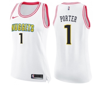 Women's Nike Denver Nuggets #1 Michael Porter Swingman White Pink Fashion NBA Jersey
