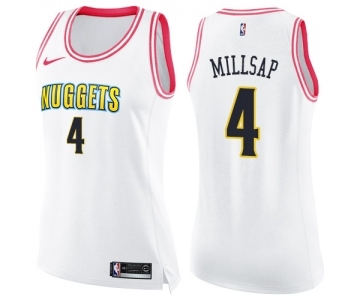 Women's Nike Denver Nuggets #4 Paul Millsap Swingman White Pink Fashion NBA Jersey