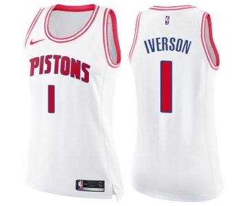 Women's Nike Detroit Pistons #1 Allen Iverson Swingman White Pink Fashion NBA Jersey