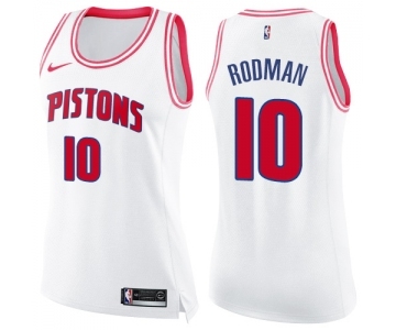 Women's Nike Detroit Pistons #10 Dennis Rodman Swingman White Pink Fashion NBA Jersey