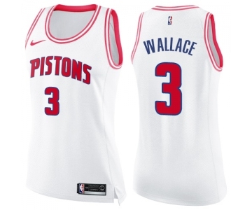 Women's Nike Detroit Pistons #3 Ben Wallace Swingman White Pink Fashion NBA Jersey