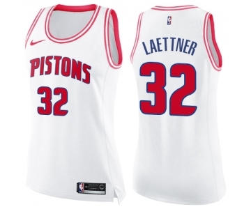Women's Nike Detroit Pistons #32 Christian Laettner Swingman White Pink Fashion NBA Jersey