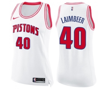 Women's Nike Detroit Pistons #40 Bill Laimbeer Swingman White Pink Fashion NBA Jersey