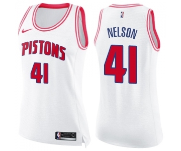 Women's Nike Detroit Pistons #41 Jameer Nelson Swingman White Pink Fashion NBA Jersey