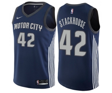 Women's Nike Detroit Pistons #42 Jerry Stackhouse Swingman Navy Blue NBA Jersey - City Edition