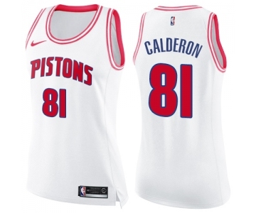 Women's Nike Detroit Pistons #81 Jose Calderon Swingman White Pink Fashion NBA Jersey