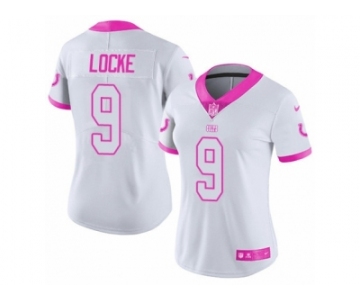 Women's Nike Indianapolis Colts #9 Jeff Locke Limited White Pink Rush Fashion NFL Jersey