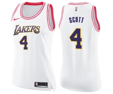 Women's Nike Los Angeles Lakers #4 Byron Scott Swingman WhitePink Fashion NBA Jersey
