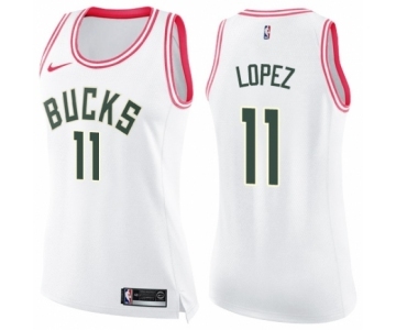 Women's Nike Milwaukee Bucks #11 Brook Lopez Swingman White Pink Fashion NBA Jersey