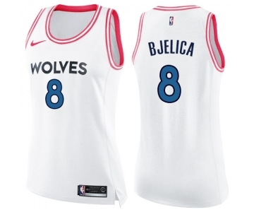 Women's Nike Minnesota Timberwolves #8 Nemanja Bjelica Swingman White Pink Fashion NBA Jersey