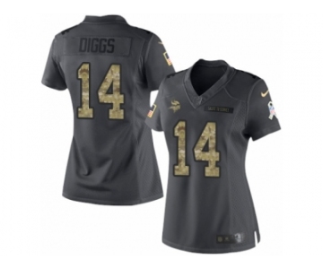 Women's Nike Minnesota Vikings #14 Stefon Diggs Limited Black 2016 Salute to Service NFL Jersey