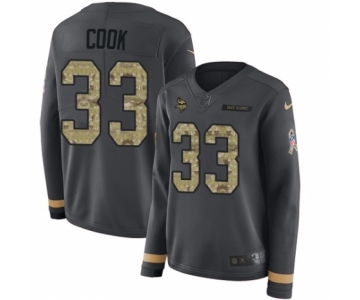 Women's Nike Minnesota Vikings #33 Dalvin Cook Limited Black Salute to Service Therma Long Sleeve NFL Jersey
