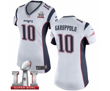 Women's Nike New England Patriots #10 Jimmy Garoppolo Elite White Super Bowl LI 51 NFL Jersey