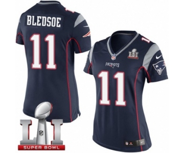Women's Nike New England Patriots #11 Drew Bledsoe Elite Navy Blue Team Color Super Bowl LI 51 NFL Jersey