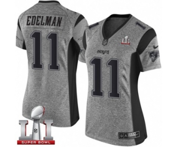 Women's Nike New England Patriots #11 Julian Edelman Limited Gray Gridiron Super Bowl LI 51 NFL Jersey