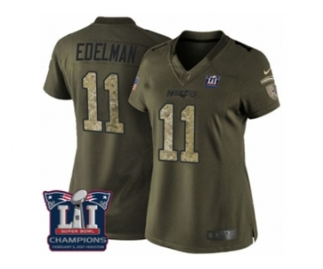 Women's Nike New England Patriots #11 Julian Edelman Limited Green Salute to Service Super Bowl LI Champions NFL Jersey