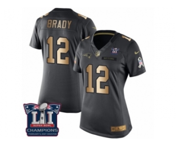 Women's Nike New England Patriots #12 Tom Brady Limited Black Gold Salute to Service Super Bowl LI Champions NFL Jersey