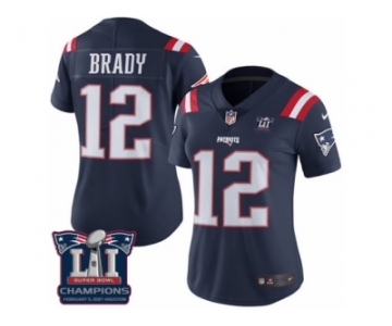 Women's Nike New England Patriots #12 Tom Brady Limited Navy Blue Rush Super Bowl LI Champions NFL Jersey