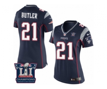 Women's Nike New England Patriots #21 Malcolm Butler Navy Blue Team Color Super Bowl LI Champions NFL Jersey