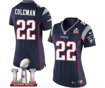 Women's Nike New England Patriots #22 Justin Coleman Elite Navy Blue Team Color Super Bowl LI 51 NFL Jersey