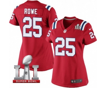 Women's Nike New England Patriots #25 Eric Rowe Elite Red Alternate Super Bowl LI 51 NFL Jersey
