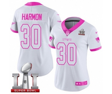 Women's Nike New England Patriots #30 Duron Harmon Limited White-Pink Rush Fashion Super Bowl LI 51 NFL Jersey